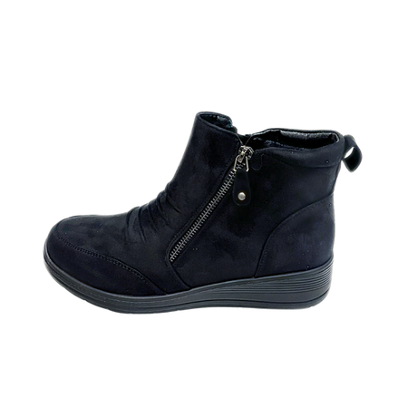 Savoy Wedge Ankle Boot with Zip Detail - Black