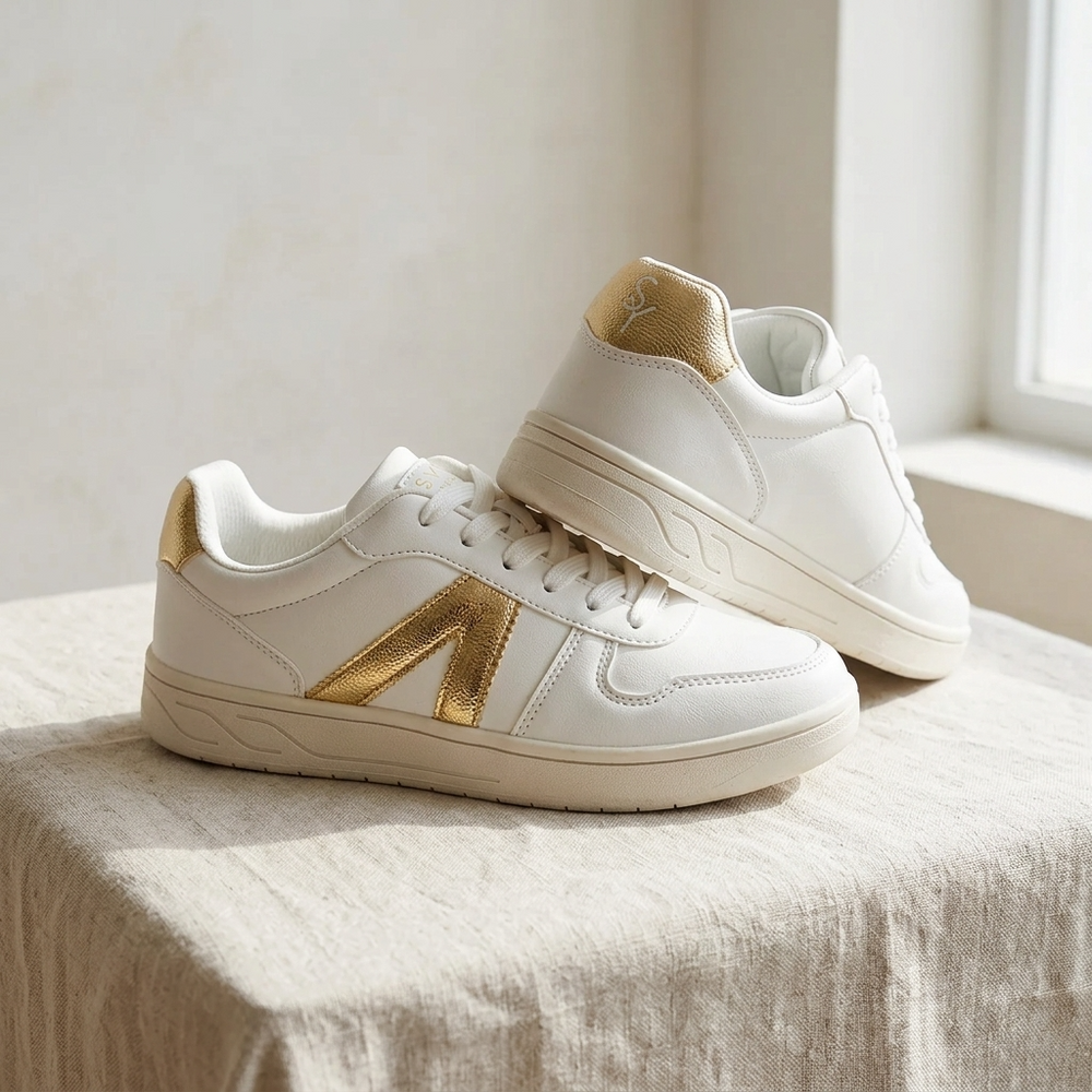 Savoy Retro Lace Up Sneaker - Gold Metallic