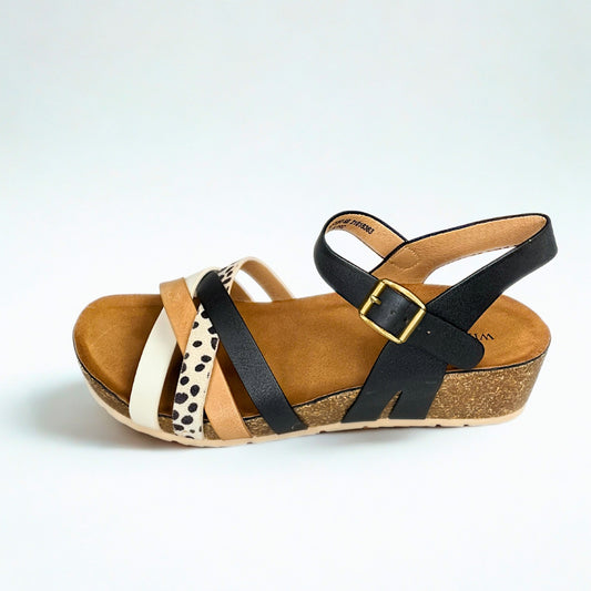 Wild Alice black MULTI CRISS CROSS strap sandal