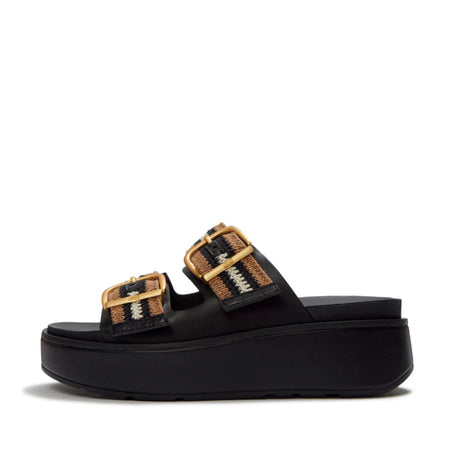 Fitflop GEN-FF Max Buckle Stripe-Webbing Two-Bar Slides - Turmeric/Tan