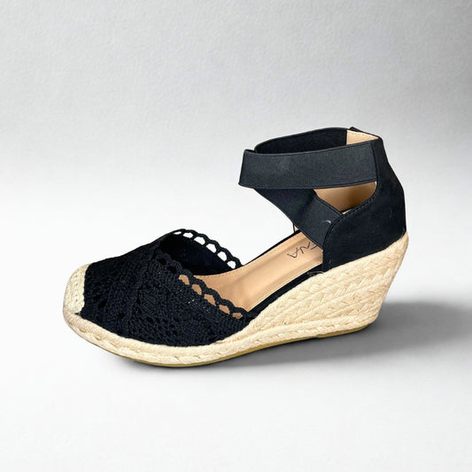 Geena black ANKLE CROSS STRAP Espadrille Wedge