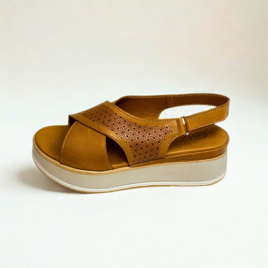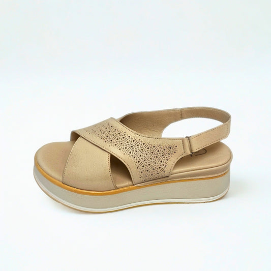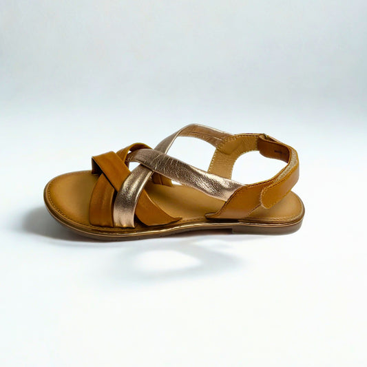 Gia rose gold/tan LEATHER CRISS CROSS sandal