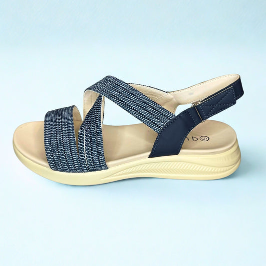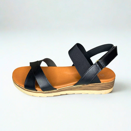 Queue black CROSS OVER elasticated strap sandal