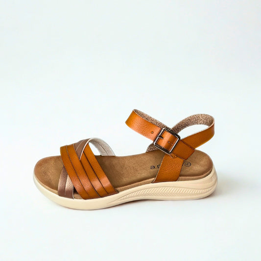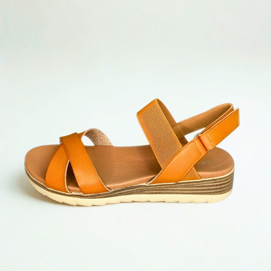 Queue camel CROSS OVER elasticated strap sandal