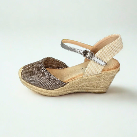 Queue pewter metallic espadrille wedge