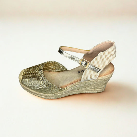 Queue gold metallic espadrille wedge