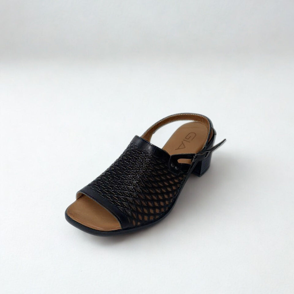 Material: Genuine leather upper in classic black with intricate cut-out detailing for a chic, breathable finish