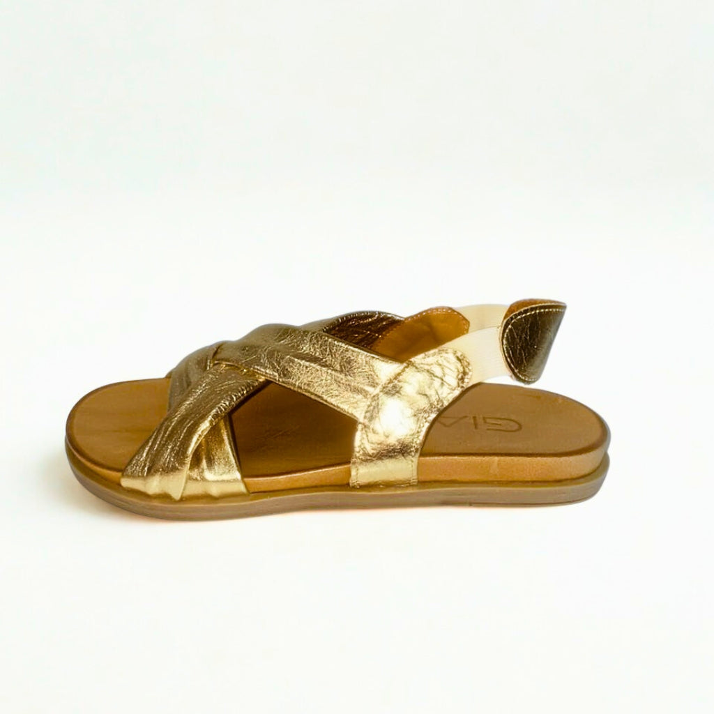 Material: Genuine leather upper in a metallic gold finish for a refined shimmer
