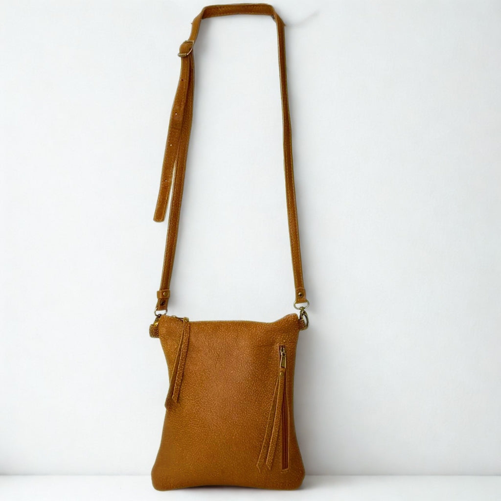A casual everyday crossbody bag in a rich whisky tone with a soft two tone finish, designed for simple, practical wear.